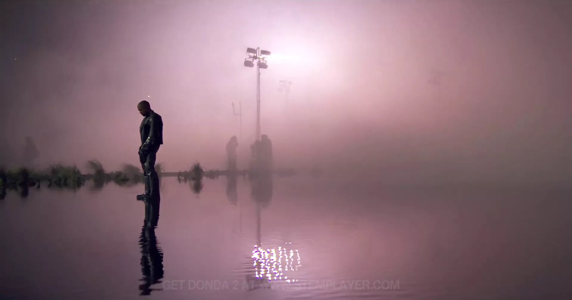 Dozens (or hundreds, really) of bodies flooded out in organized lines, placing themselves in front of and around the stage in various forms. As massive as the scale was, with not a single person in the crowd genuinely knowing what direction or purpose there was to it, the synchronization was nothing short of impeccable. The more bodies that emerged, the more disorienting it all became. Motorcycles sped around the stage in extensive circles, Ye danced on his porch and walked through the water with some of his friends accompanying him to vibe and dance themselves, an eclipse appeared on a screen above the staging, and a choir clad in what looked like plague masks from a distance but seemed to be mourning veils.
