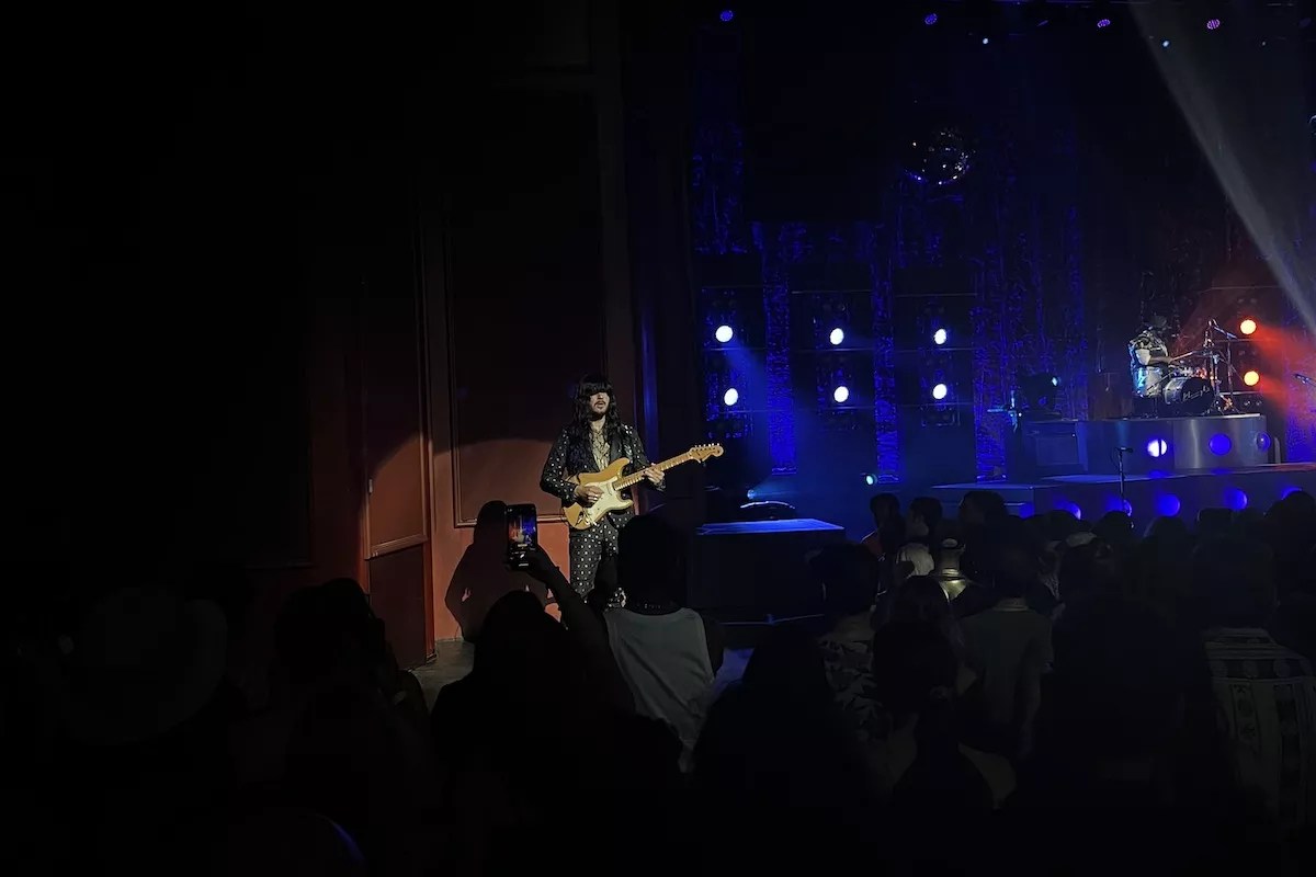 The set opened with “First Class,” and the album opener from 2020’s Mordechai served as a proper introduction to the level of chill the show would come to encompass. You came to the wrong show if you entered the Fillmore expecting a high-energy performance. That’s not to say Khruangbin lacked oomph onstage. In fact, the band oozes stage presence. Lee slunk around, strumming her bass and teasing the crowd with her natural charisma (and a dress slit to the thigh). Perched high above his bandmates, Johnson exuded effortless cool behind the drums. Then there was Speer, who might have the best hair in music right now, and who oscillated between sex in a suit and handsomely humorous throughout the evening.