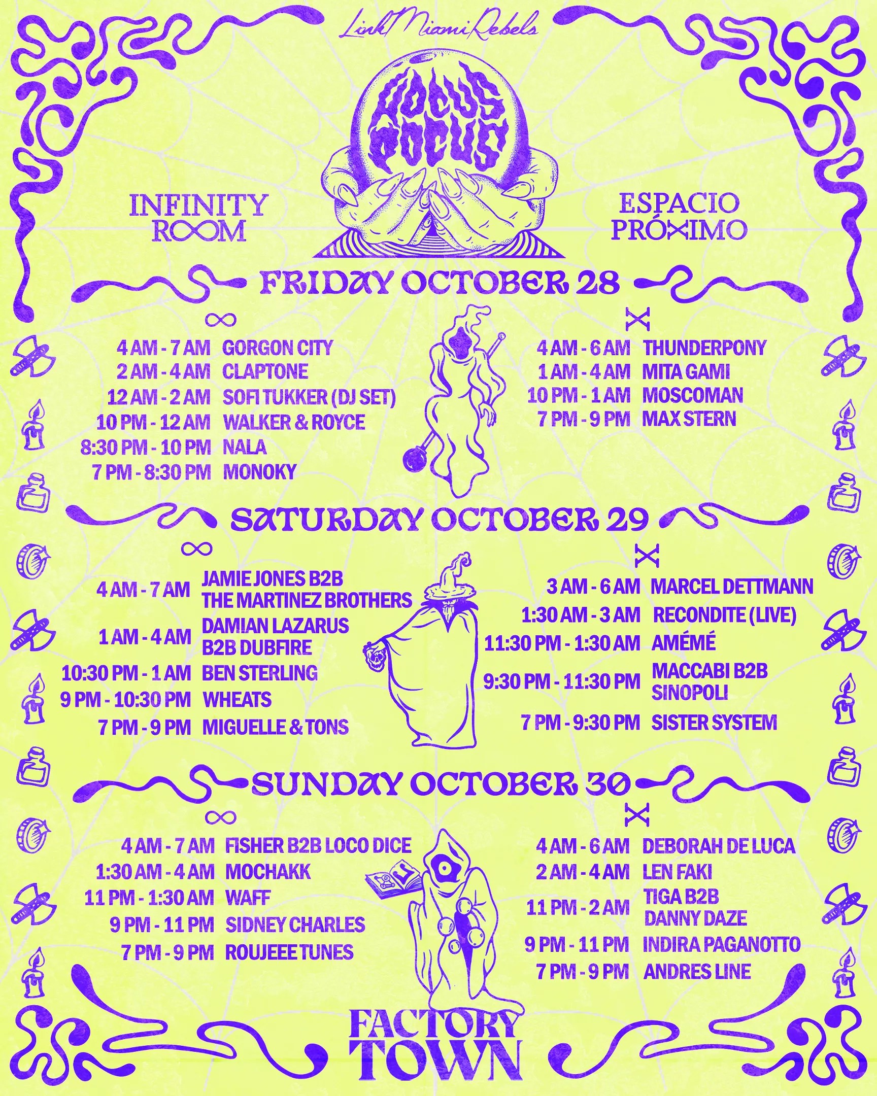Last year, Factory Town, the industrial warehouse lot operated by Club Space as a makeshift event space, made its debut during the Halloween weekend with Hocus Pocus. The three-day event, presented by Link Miami Rebels, hosted acts like Charlotte De Witte, Adam Beyer, Tiga, Chris Lake, Bob Moses, and Loco Dice.