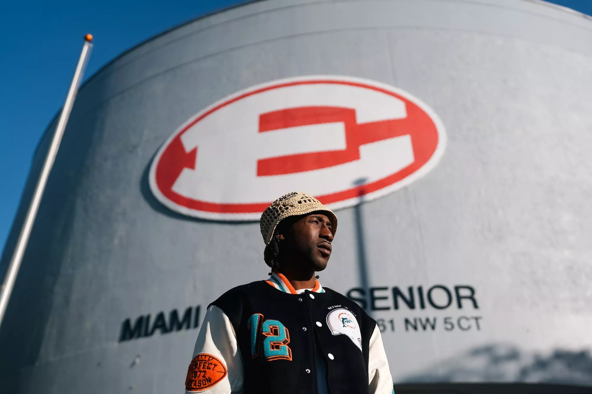 At the CollabLab in Little Haiti, Charles is dripped out in the Andrew x Miami Dolphins letterman, black jorts, a twill bucket hat, and slides because he apparently can’t find his Bape Timbs. Soon after, he’s hopping into the car with his homie Cliff, videographer Gwälä, and LoveSK on our way to Charles’ childhood home. Soon, we arrive outside of the small, boxy apartment complex on NE Second Avenue and 54th Street in Little Haiti.