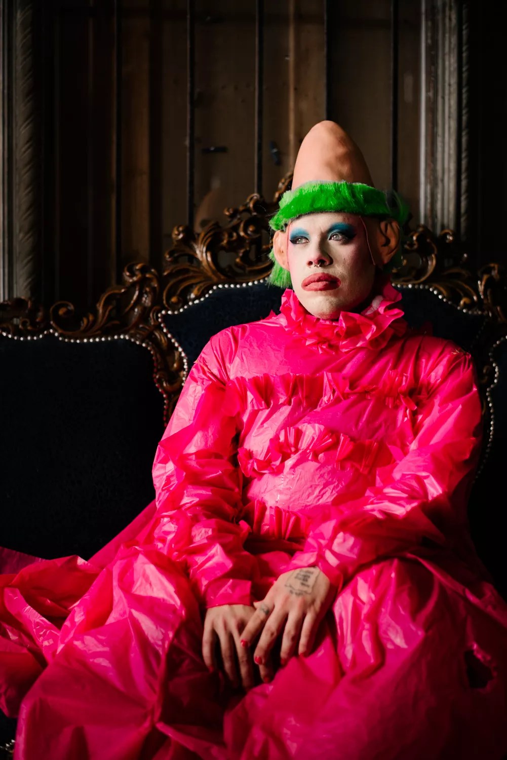 “What I want to do in my work,” Kunst says, “is to take up a lot of the different elements of what it’s like to live in the world as a queer person, as a gender-nonconforming person, and express those realities in hyperbole to make it as absurd visually as it possibly can be.” That exaggeration lends itself to clearer critiques of the ways queer people are ostracized – a level of analysis Kunst believes is sometimes lost in drag performance.