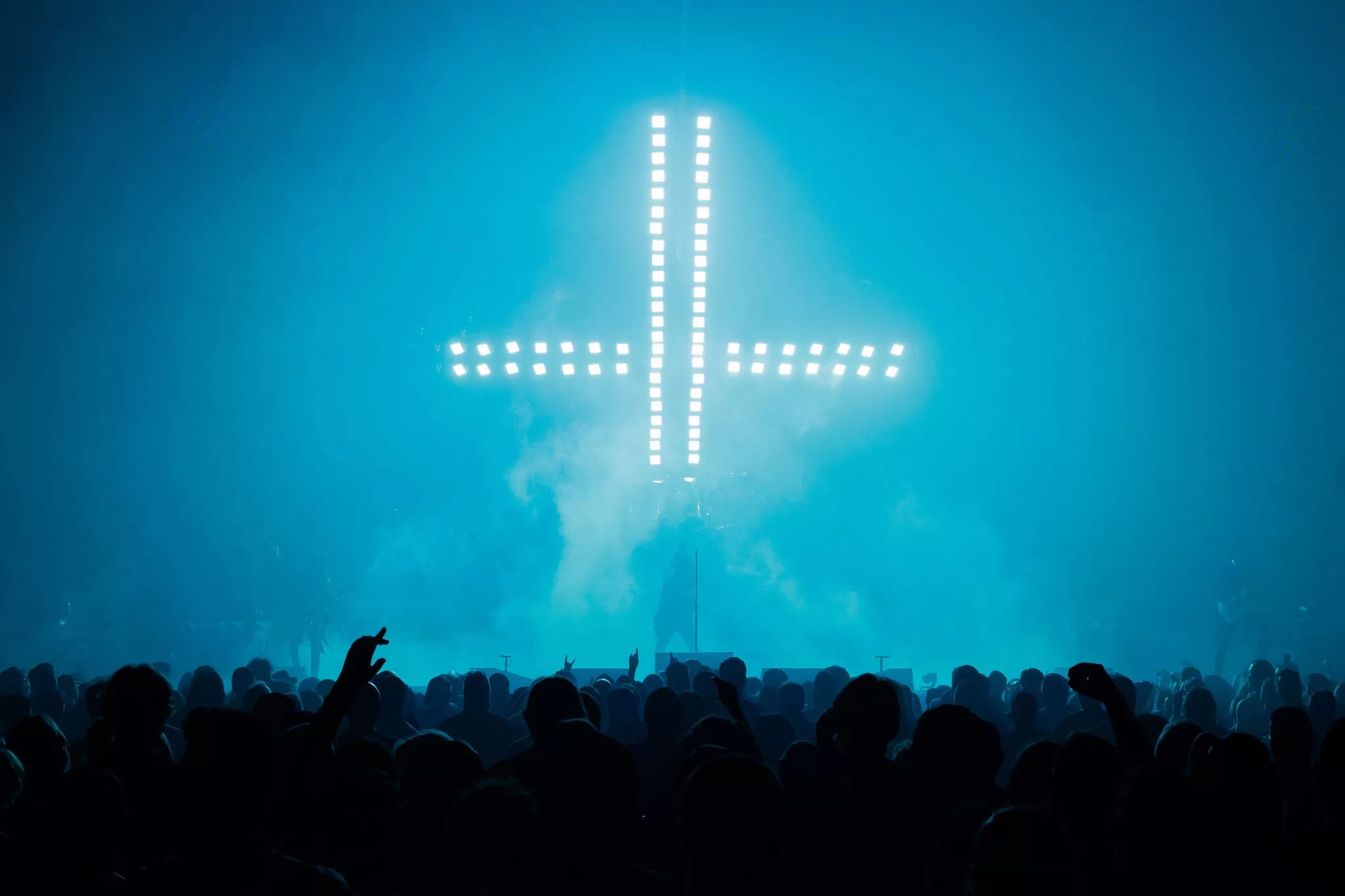 An inverted cross was part of the show’s stage design.