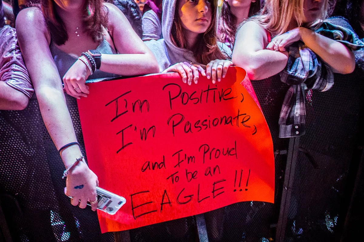 Throughout the evening, instead showing band names or flashy graphics, screens across the various stages projected the phrase “MSDSTRONG” with a ribbon and the school’s eagle mascot replacing the “o” in the word “strong.” It was a reminder of what the Friday-night festivities were really all about.
