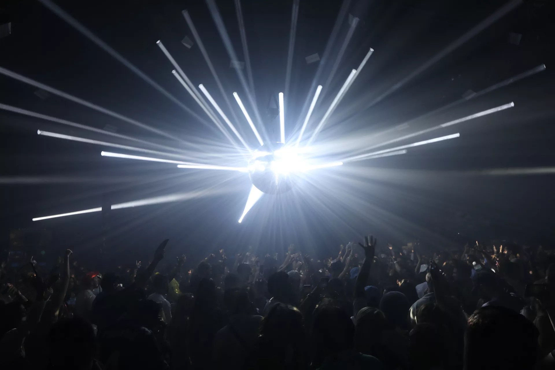 The few times the crowd expressed jubilation came when all the lights shone their beams on the disco ball, making it seem like someone had switched the house lights on, if only for a second. For the most part, everyone focused on dancing.