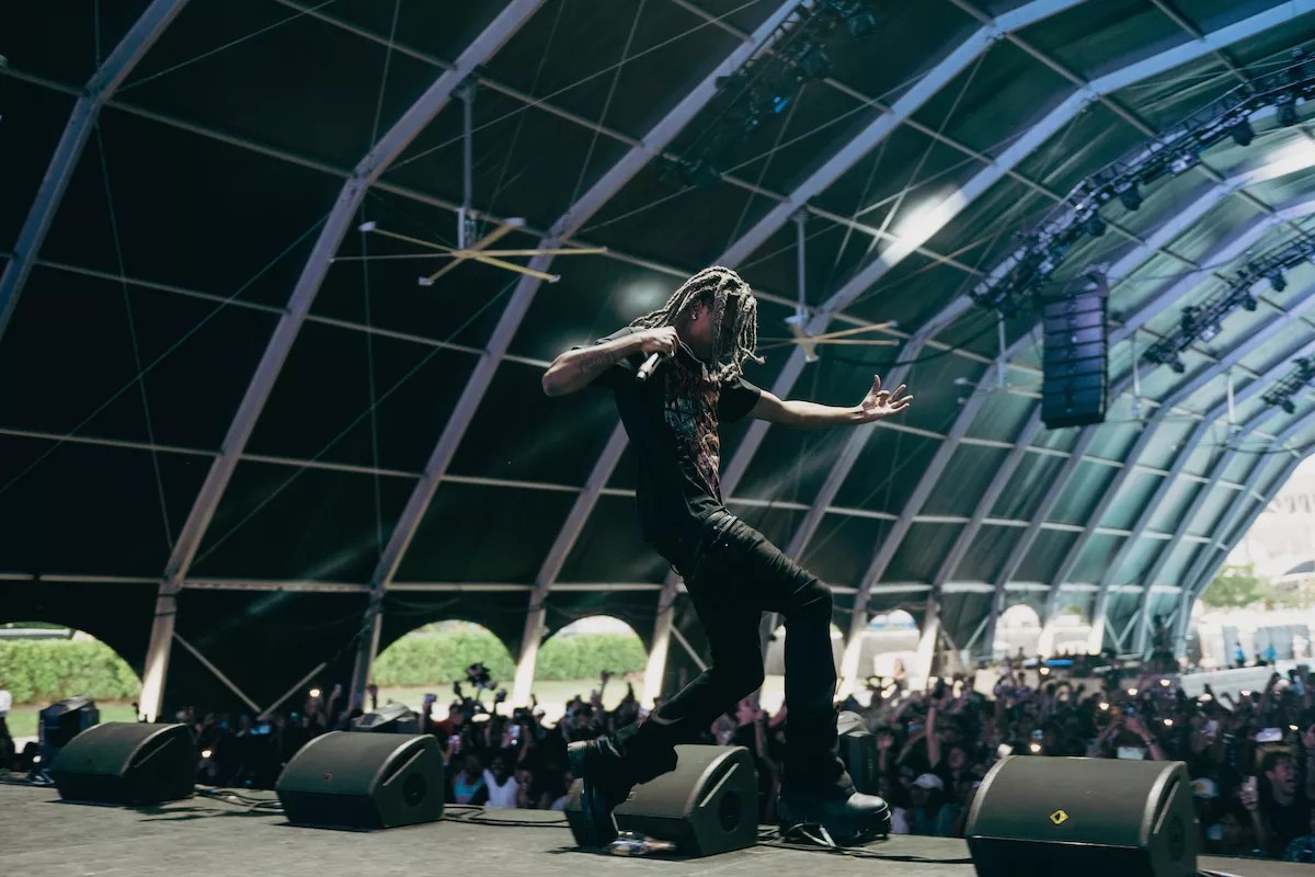 It has been a bleak year for Young Stoner Life Records. The untimely passing of Lil Keed days after Young Thug, Gunna, and 26 other YSL members were indicted on RICO charges was a big blow to the rap scene in Atlanta. But YSL affiliate Lil Gotit, Keed’s younger brother, used his RL set to turn anguish into revelry, performing some of Keed, Thug, and Gunna’s greatest hits alongside 100,000 random dudes onstage. Gotit may have only performed a song or two from his own catalog, but he had no problem providing the crowd with celebrated hits like Keed’s infectious “HBS.” Paying homage to some of Thug and Gunna’s recent highlights like “Hot” and “Ski” was heartwarming, too. Gotit’s stationary jig onstage was a little comical, but he looked comfortable as hell with his brigade of hype-men and -women giving the crowd energy to feed off. Olivier Lafontant Destroy Lonely Photo by Frankie Vergara (@frankievergara_)/Courtesy of Rolling Loud