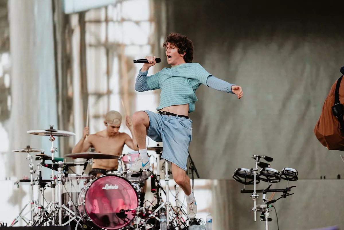 Sporting pink-hued hair and adorned with a Sanrio bikini top, TiaCorine took the goPuff stage for a short but sweet set. Garnering viral fame when her 2018 song “Lotto” took over TikTok during the pandemic, TiaCorine has figured out how to fit in, and rightfully so, with some of the buzziest names in hip-hop. Weaving together bubbly beats with clever rhymes, her lyrics go so hard that she gives even the lighthearted bangers a bit of a temper. Sunday’s crowd seemed unappreciative initially, but the opening notes of “FreakyT” brought them around. Valerie Magan Turnstile Photo by Rolling Loud/@alyyypas