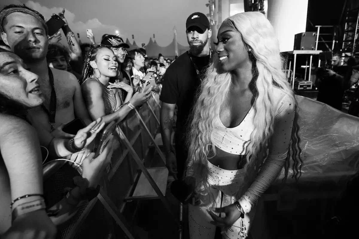 Delivering the performance of a lifetime on the Audiomack stage was Flo Milli, a breakout star on the rap scene in 2021. The set behind her was tailored to her young-adult audience, with a pink Y2K-themed collage bedecked with memes of Kourtney Kardashian and Tiffany Pollard, alongside photos of the cast of the 2001 cult classic Mean Girls. Flo Milli proceeded to perform “May I,” “Like That Bitch,” and other hits from her debut mixtape Ho, Why Is You Here? Fans made it clear that they couldn’t get enough “Flo Milli shit” – her signature catchphrase – as they didn’t miss a single word of her songs while twerking and pulsing to the music. Her girly-yet-punchy aesthetic continues to come further to the fore as she continues to gain cred, solidifying her as one of the female rappers – and rappers, period – pushing out viral songs. Photo by Michele Eve Sandberg