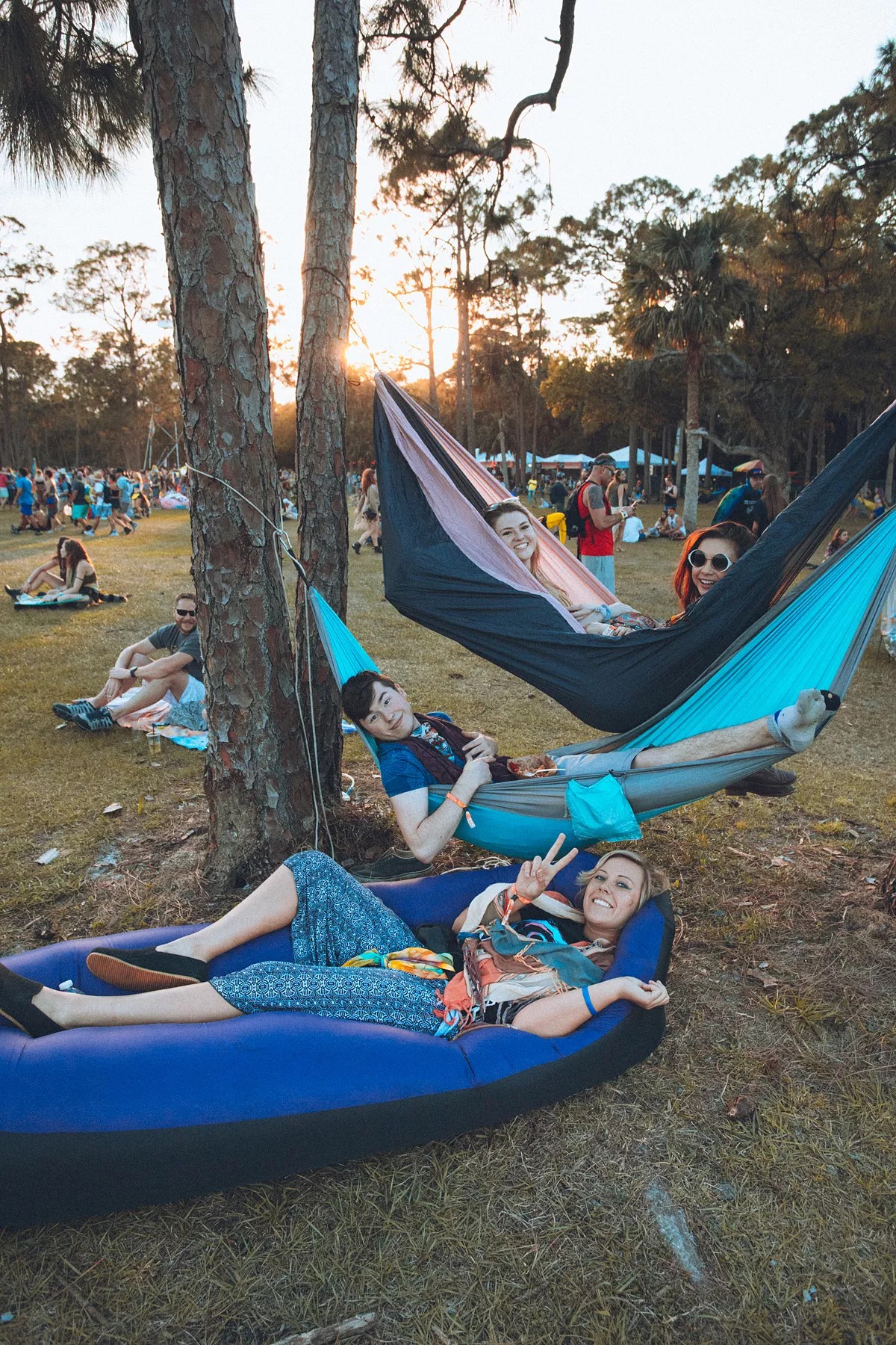 OMF’s venue, Sunshine Grove, is a vast, beautiful tract of land. There are plenty of open spaces for stages, vendors, and neon-colored LED Hula-Hoop-ing, but there’s also a small beach, a lakefront, and plenty of wooded areas. The last gives the fest a summer-camp-like vibe: Most mornings, you’ll wake up to temperatures in the low 60s before the warmth of the sun quickly sends temps into the high 70s for the duration of the day. Soak it all in, because you’ll be back to the daily grind before you know it.