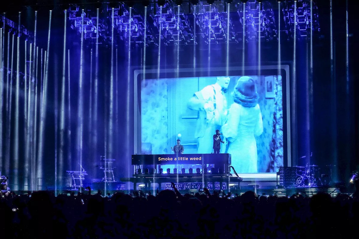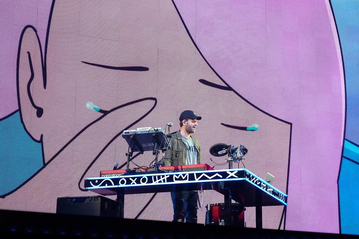 After an awkward intro that saw singer and producer Taggart – undoubtedly the looks in the operation – walk onstage while a text conversation with Pall was displayed onscreen, the two jumped into “The One,” the opening track on their new record, Memories… Do Not Open. From there, the performance transitioned into a DJ set, with Taggart and Pall playing anonymous EDM tracks while smoke shot from the stage at an approximate rate of every two minutes.