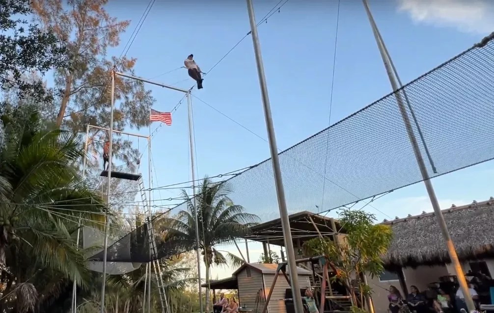 The aerial artist – a stout, outspoken Florida native who has run restaurants in Jacksonville and a car dealership in Doral – describes his trapeze rig as a sprawling, portable swing set that he can dismantle in an hour and fit into a six-by-twelve-foot trailer.