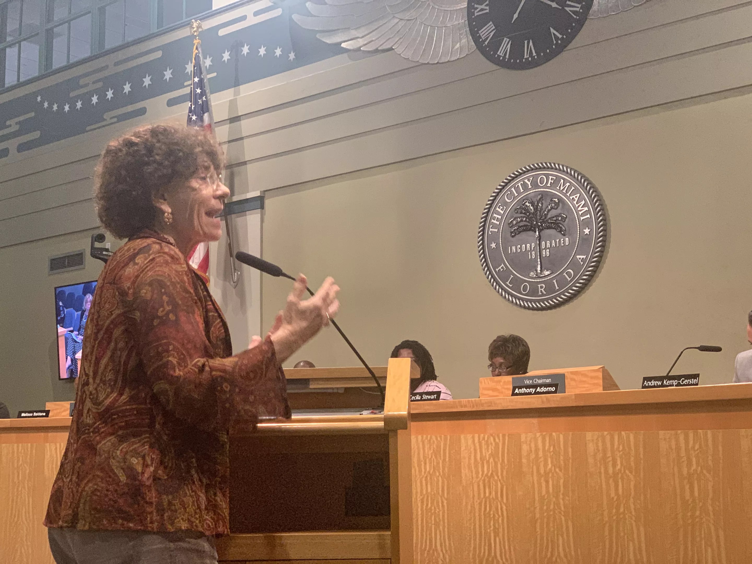 Longtime Florida ACLU lawyer Jeanne Baker speaks in front of the Miami Community Advisory Board.