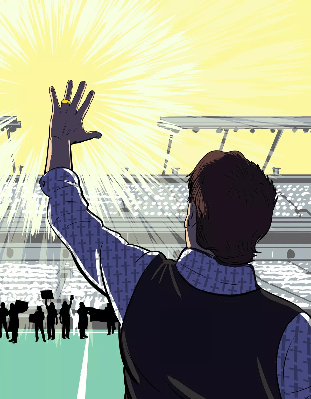 Coy had forsaken rock ‘n’ roll for Jesus but then became a rock star anyway. Huge crowds hung on his every word. Young women begged for photos. And somewhere along the line, Coy slipped right back into his old life. Illustration by Joseph Laney
