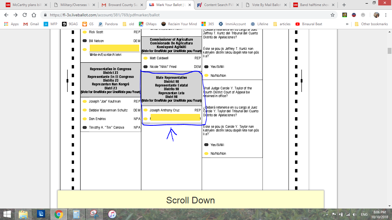 Rauch says the first sign of trouble came almost as soon as she followed the link. In the race for state House District 98, the Democratic candidate’s name was blocked out, making it look as if the Republican was the only choice. Knowing that Broward is a blue county, Rauch says she was taken aback. It was only when she left that item blank that an error message popped up and Democrat Michael Gottlieb’s name appeared.