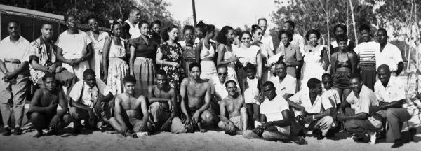 A group gathers at a historical, segregated Black beach on Virginia Key in the 1940s.