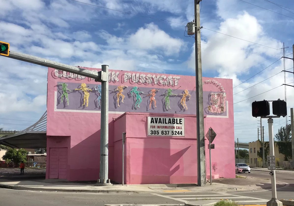 Club Pink Pussycat, the strip club on North River Drive and NW 36th Street near Miami International Airport, is a Miami icon known for its pastel pink façade, a vestige of Miami’s 1980s aesthetic.