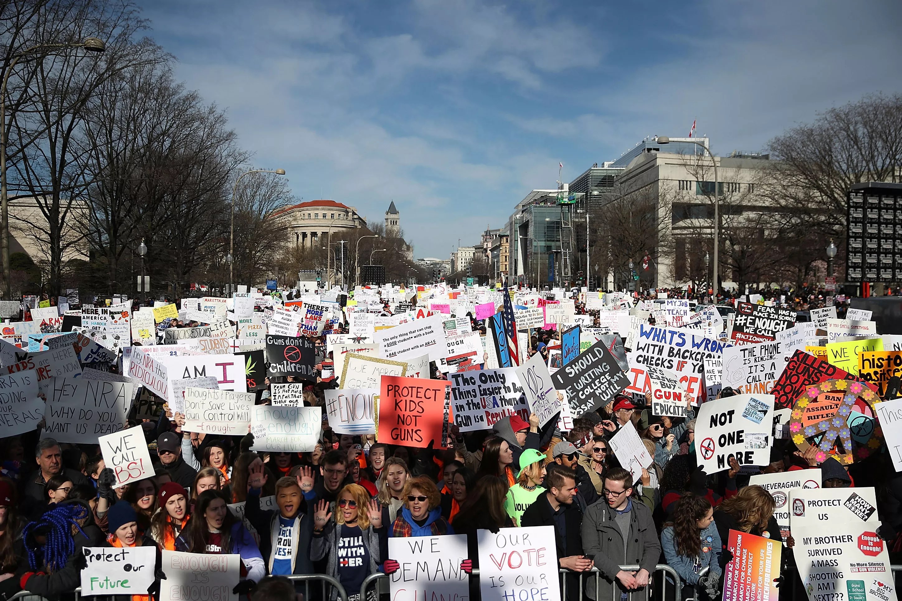 Protesters gather during the March for Our Lives rally on March 24, 2018, in Washington, DC, after the Parkland school shooting on that left 17 dead.