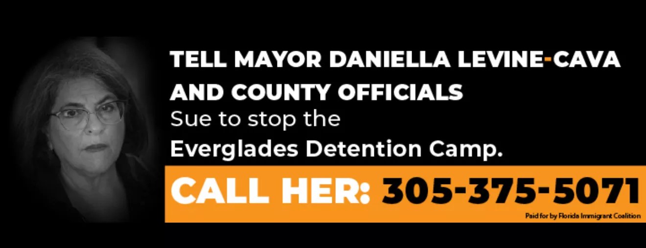 Florida Immigrant Coalition paid for a pair of billboards demanding Miami-Dade file a lawsuit to shut down Alligator Alcatraz.
