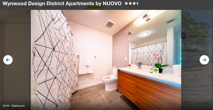 “Wynwood Design District Apartments by NUOVO features an outdoor pool and a fitness center,” a description of the property on Expedia.com reads. “Dining options at the apartment include a restaurant and a coffee shop/café.” There’s also a business center, a meeting room, and “public areas equipped with complimentary wired and wireless Internet access.”