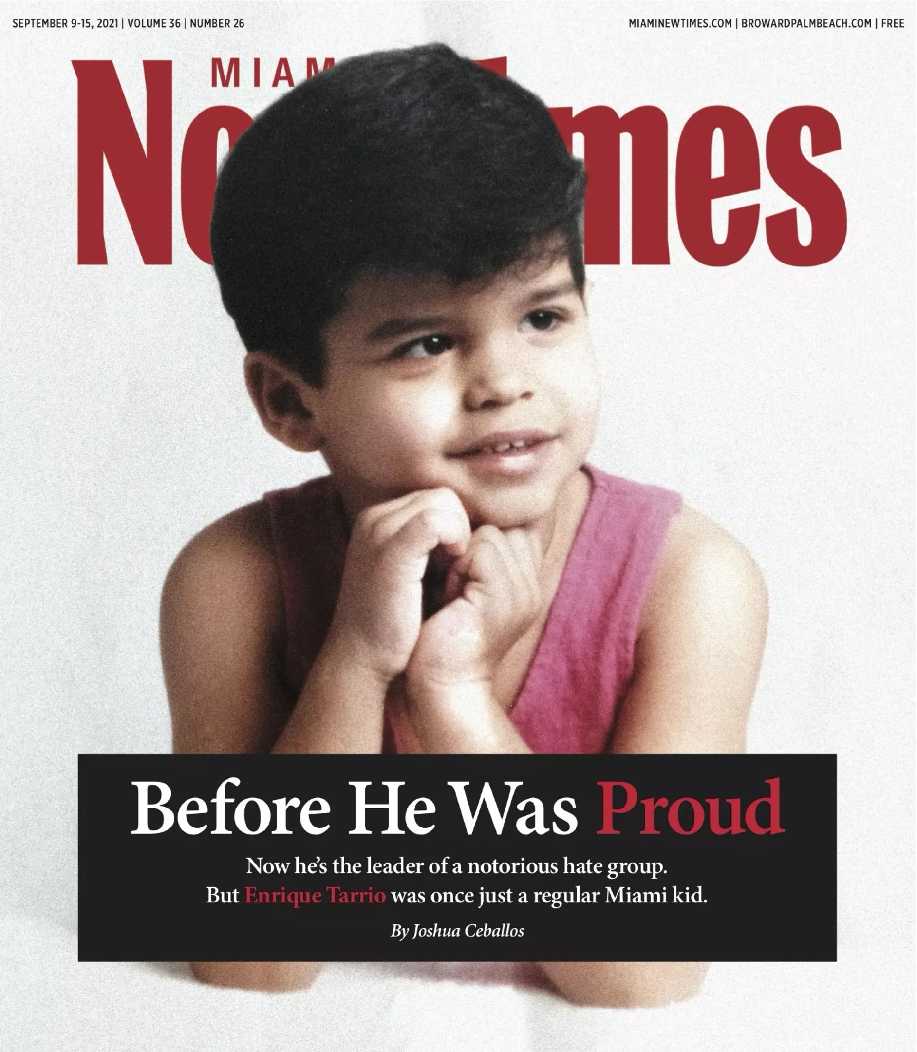 Proud then — prouder now? Enrique Tarrio at home in Miami in the summer of 2021.