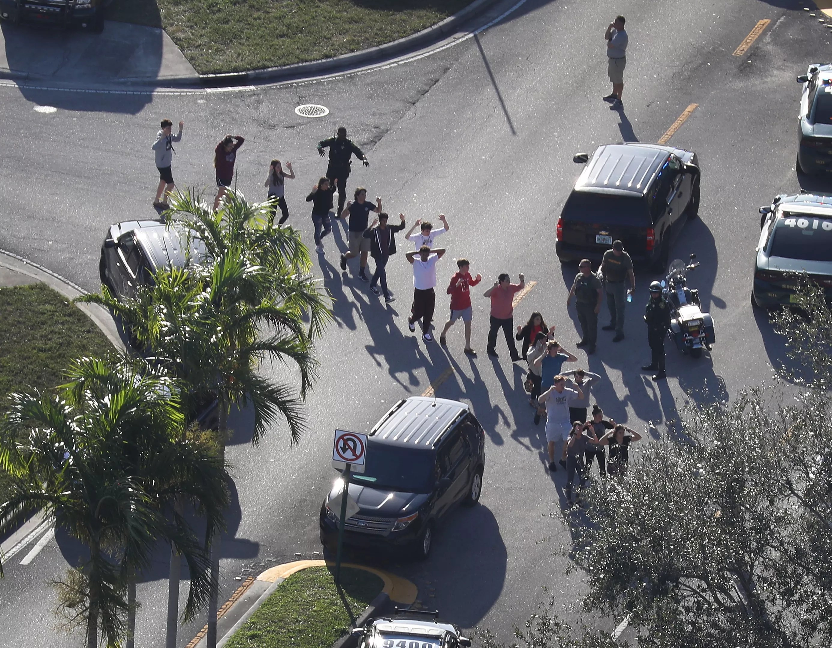 A Broward Sheriff’s Office timeline stated that the shooter dropped his assault rifle and left the building at roughly 2:28 p.m. that day. Five minutes later (11 minutes after the massacre began), police made their first entry into the building.