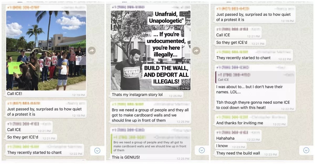 The chats, which New Times received from an anonymous tipster in the group, show FIU’s College Republicans sharing memes calling the protesters injured and killed in Charlottesville by Nazis “snowflakes.” The group also discussed calling ICE on classmates who protested in favor of protecting young undocumented immigrants last week.