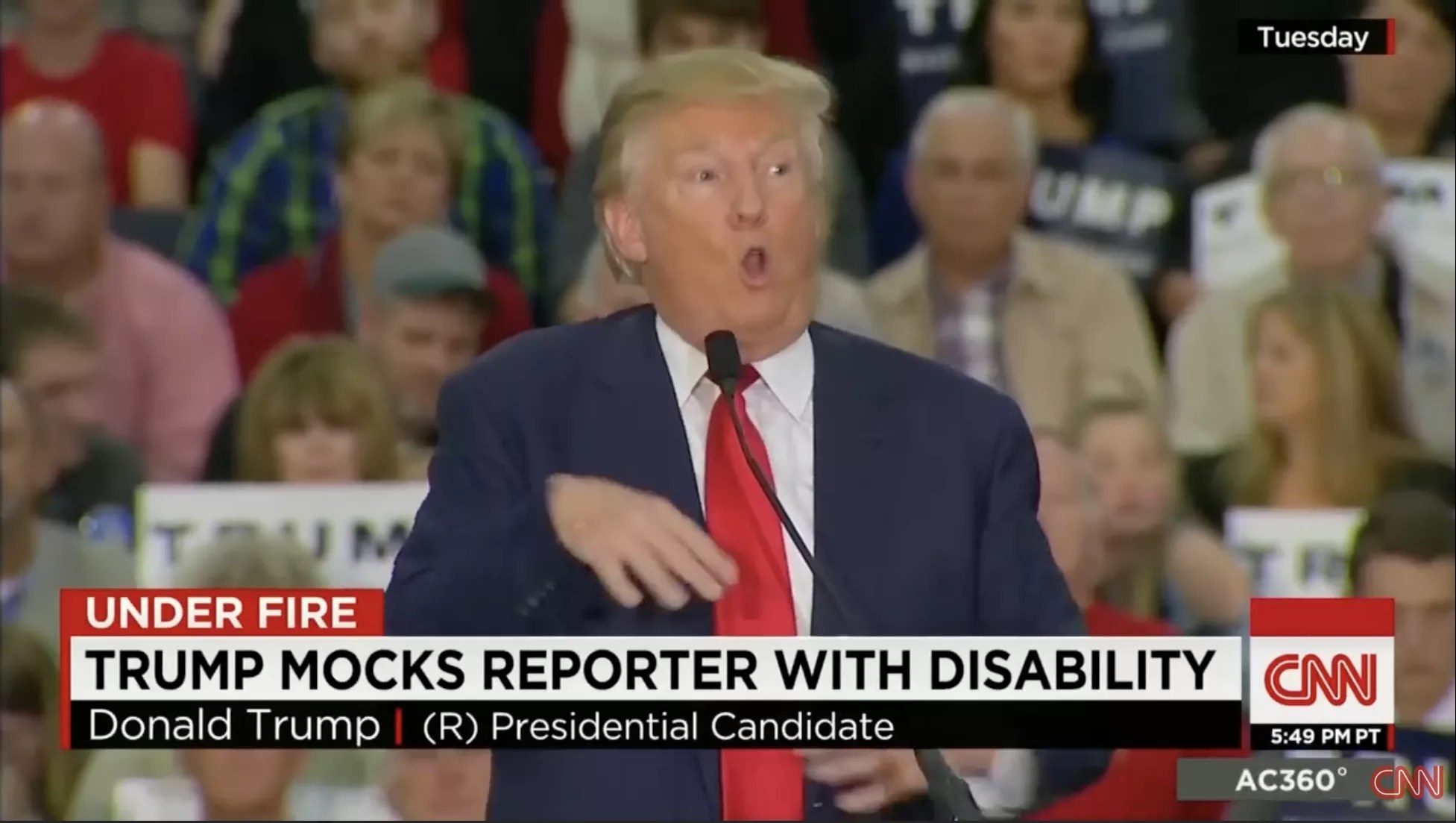 Then-presidential candidate Donald Trump mocks a reporter with a disability at a South Carolina campaign rally in 2015.