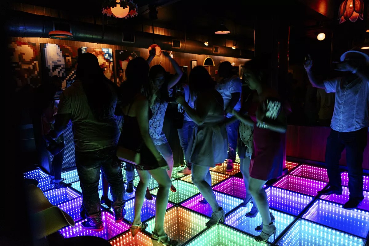 For now, Purdy parties on. “I once had a friend tell me – I remember and I wrote it down – that ‘Purdy is like the friend of yours who you always tell to grow up but who never changes,'” Binkiewicz says. “‘But when you’re both old, you realize he was right to stay the same the whole time.'” Purdy installed a rainbow light-up dance floor in 2016. Photo by Karli Evans / AllSeeingMedia.com