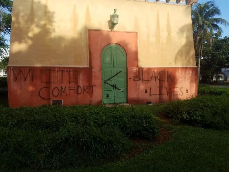 Yesterday, Coral Gables police said they’re investigating an incident of vandalism at the tower, on which someone spray-painted the phrases “WHITE COMFORT < BLACK LIVES," "how do you engage in Anti-Blackness," and "CORAL GABLES IS COMPLICIT."