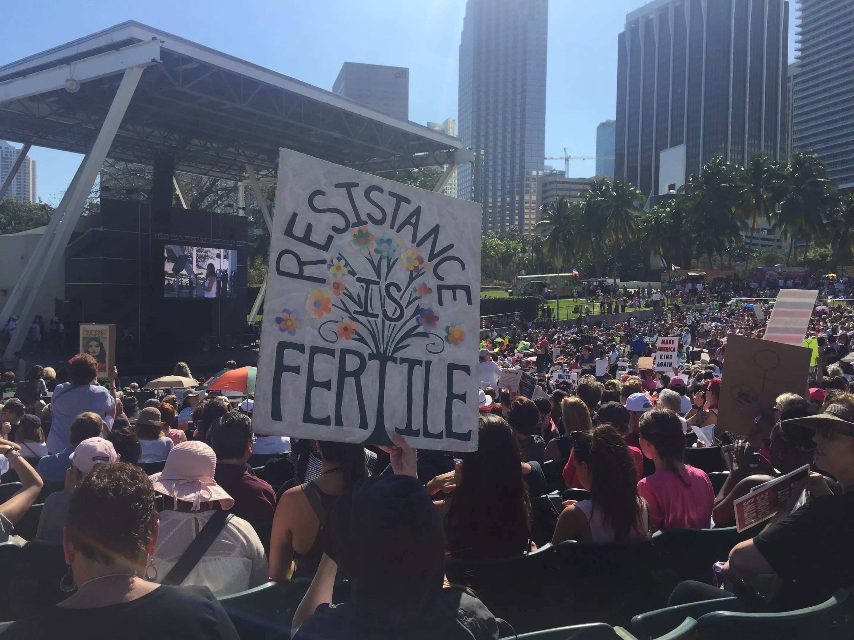 One day after Donald Trump officially became president of the United States, more than 10,000 people flooded downtown Miami in support of women’s rights and civil rights, echoing demonstrations at rallies in cities around the world.