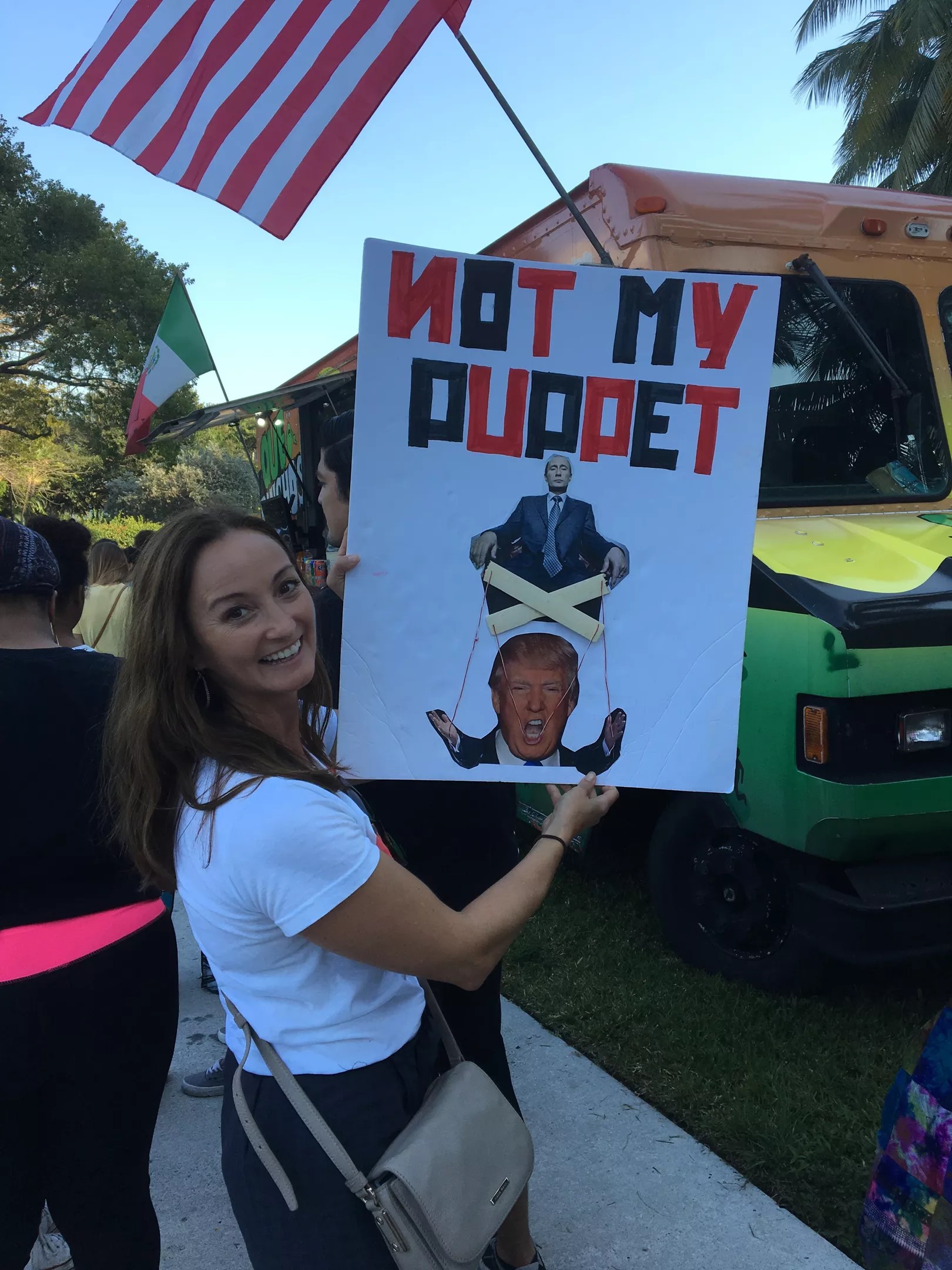 Lots of signs poked fun of the phenomenon that is Trump’s hair.
