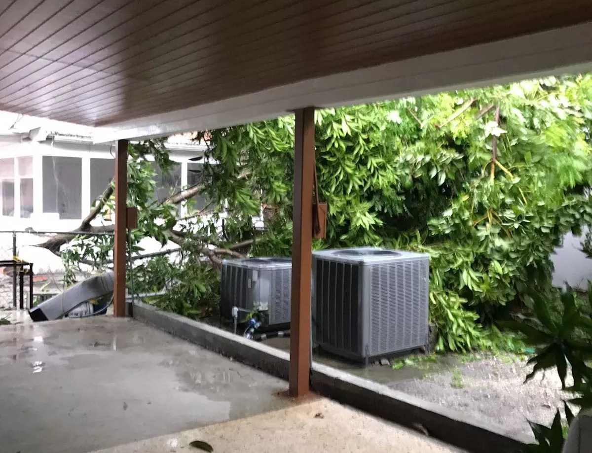 Meanwhile trees are down and whiteout storm conditions are hitting around South Florida this morning: An avocado tree down in Little Havana. Celia Almeida Winds swirl in Plantation this morning. Kristin Bjornson