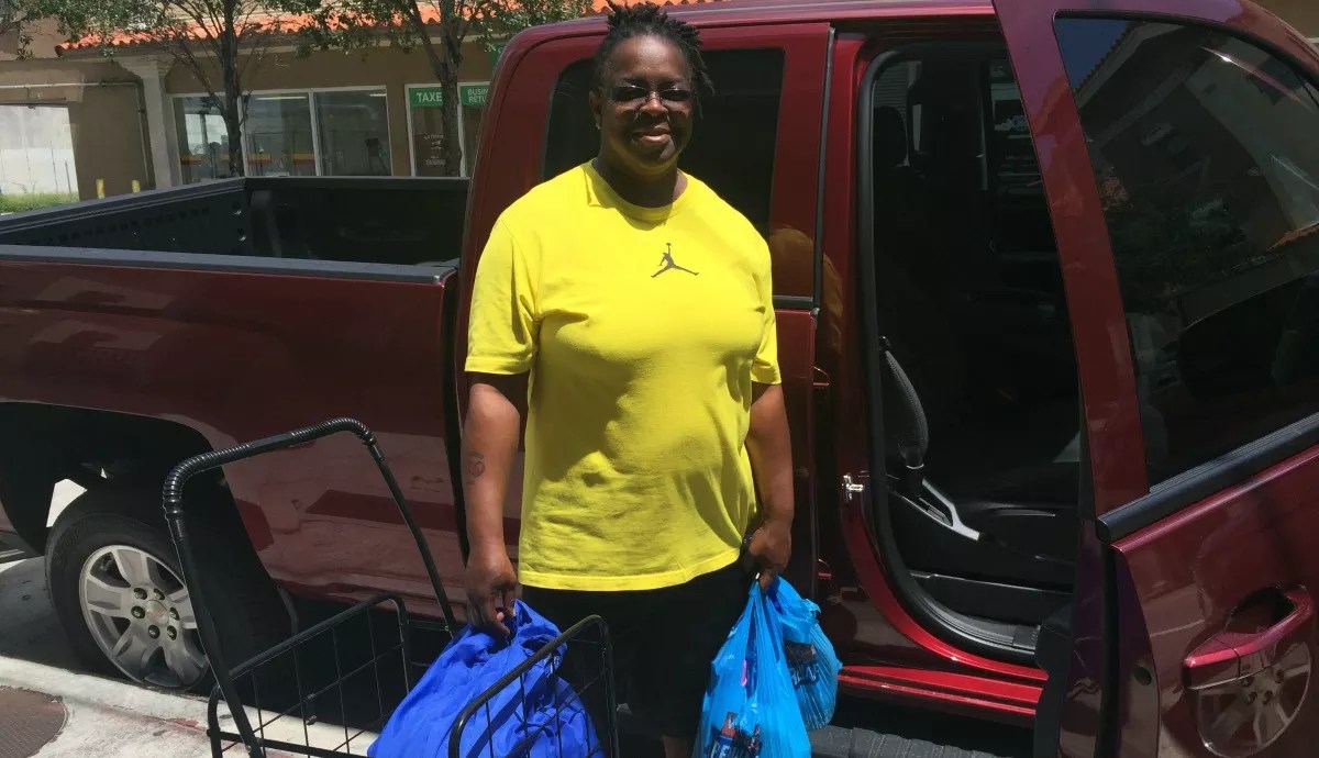 Two blocks north, seaport officer Dee Whigham drags a utility cart with two blue laundry bags to her pickup truck. As an “essential employee,” Whigham will be manning the Port of Miami for the duration of the storm, which is why she has been washing her uniforms. Though she won’t be at home, she says her house on 10th Street is already ready for the storm.