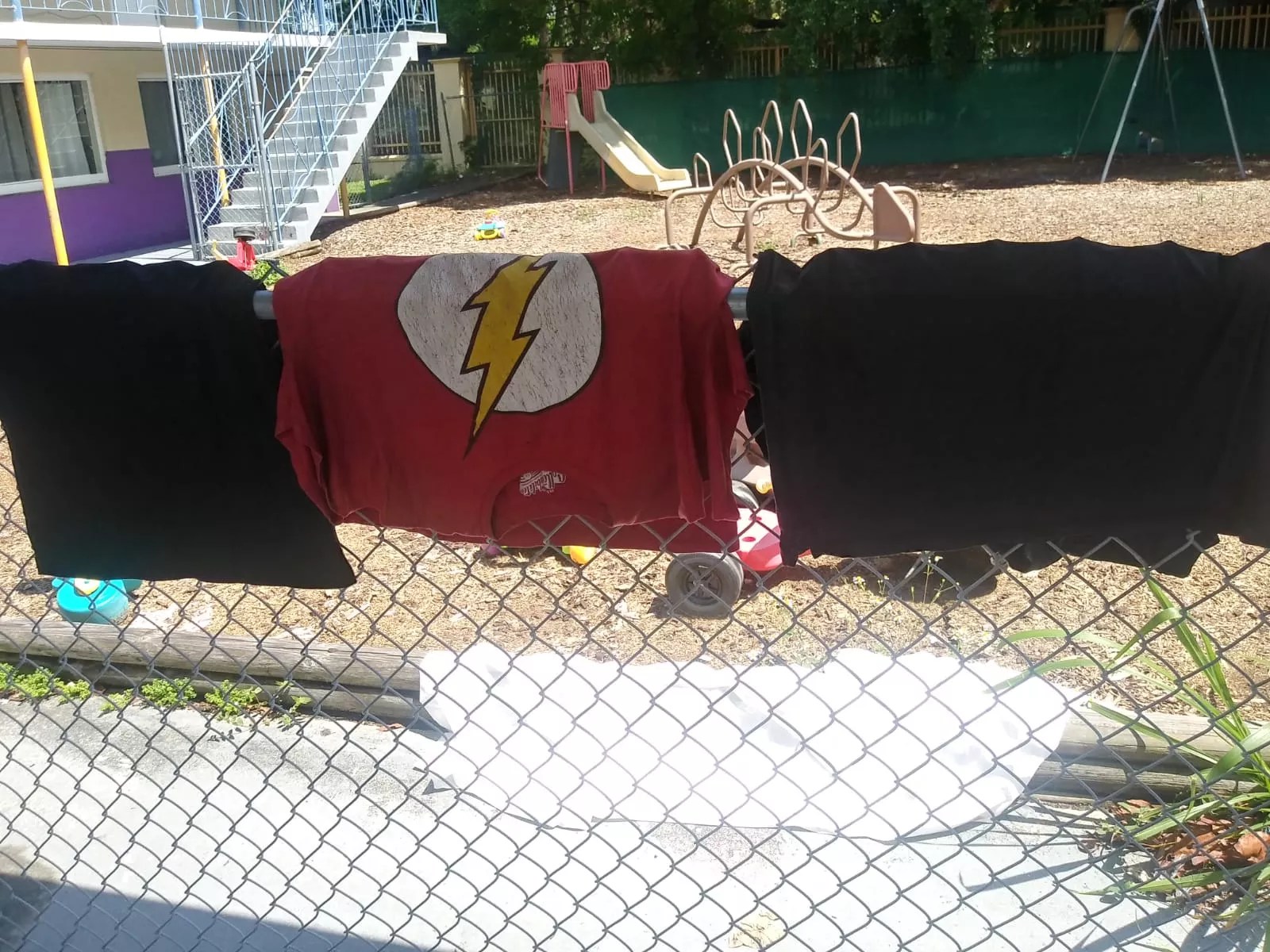 On a recent afternoon at the Overtown service site, Cedric Walker was drying his clothes on one of the chain-link fences. Many of his belongings were soaked during the torrential rains from the previous weekend.