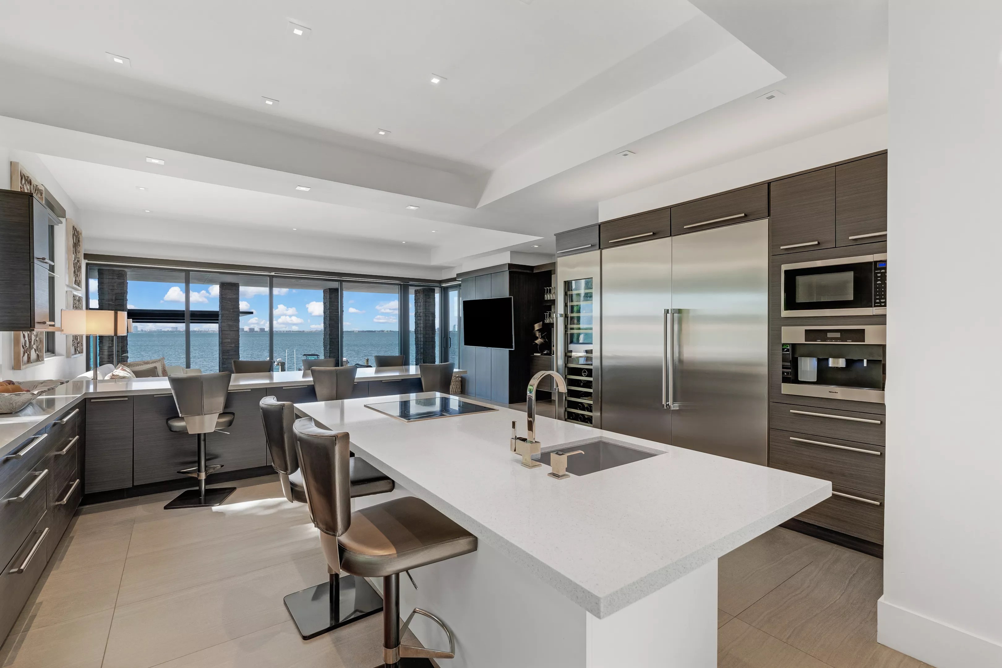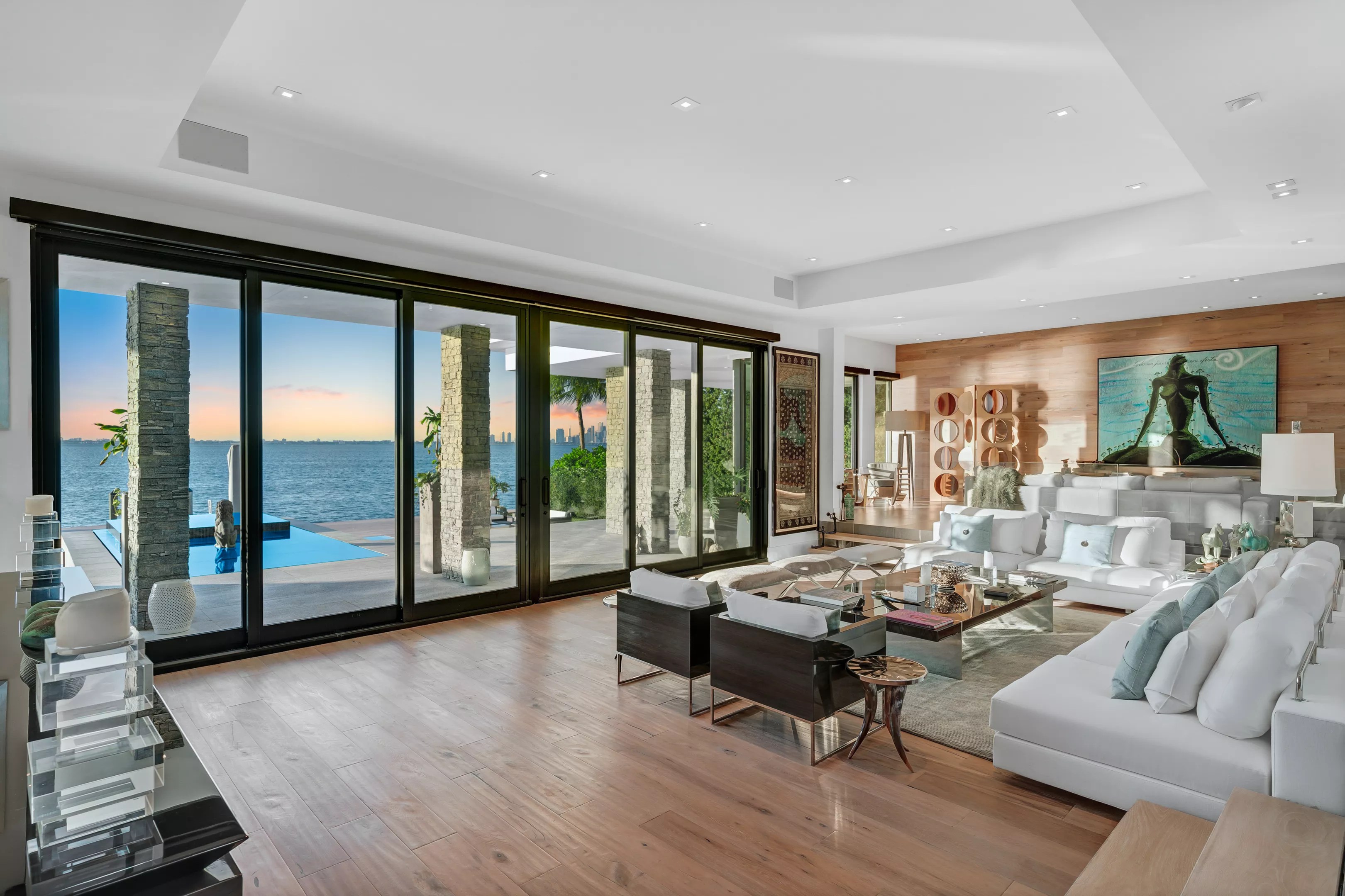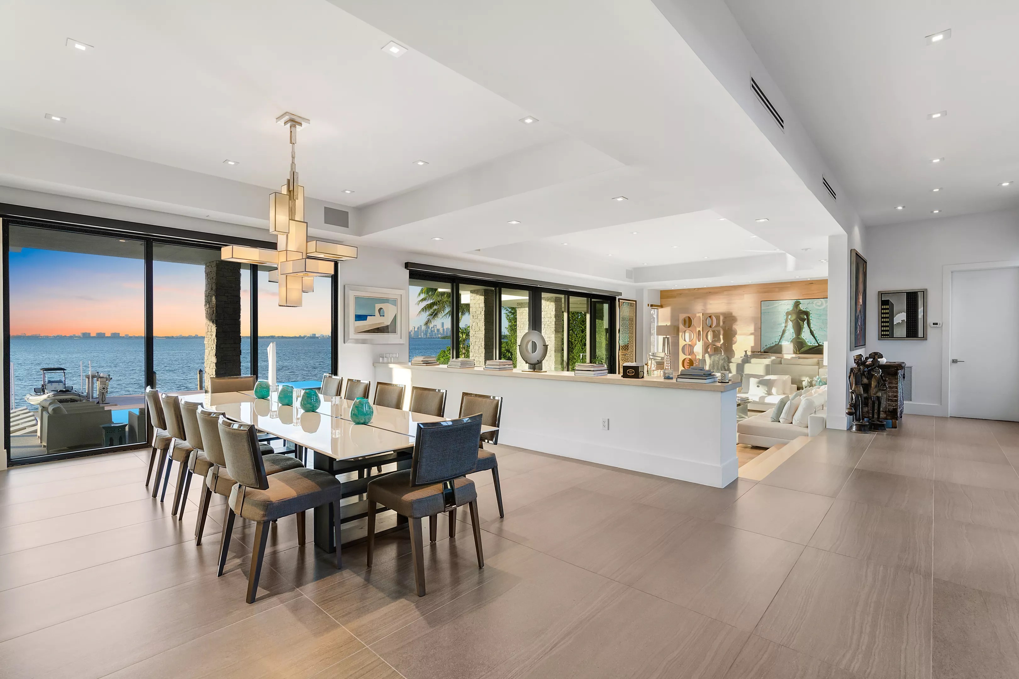 The six-bedroom and seven-and-a-half-bathroom waterfront estate at 330 Harbor Dr. on Biscayne Bay could be yours for $37.5 million. Designed by architect Ramon Alonso, the home spans more than 7,000 square feet with 120 feet of water frontage in Key Biscayne and views of the downtown Miami skyline.