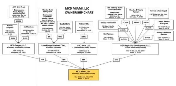 The project is designed largely to generate money for Zangrillo’s daughters. According to documents dug up by Miami blogger Al Crespo, Zangrillo has formed an LLC through which he’s handling his stake in the project. That Delaware-based LLC – named MCD Dragon, after his investment firm, Dragon Global – has three controlling groups. Zangrillo himself owns 54.2 percent of the company.