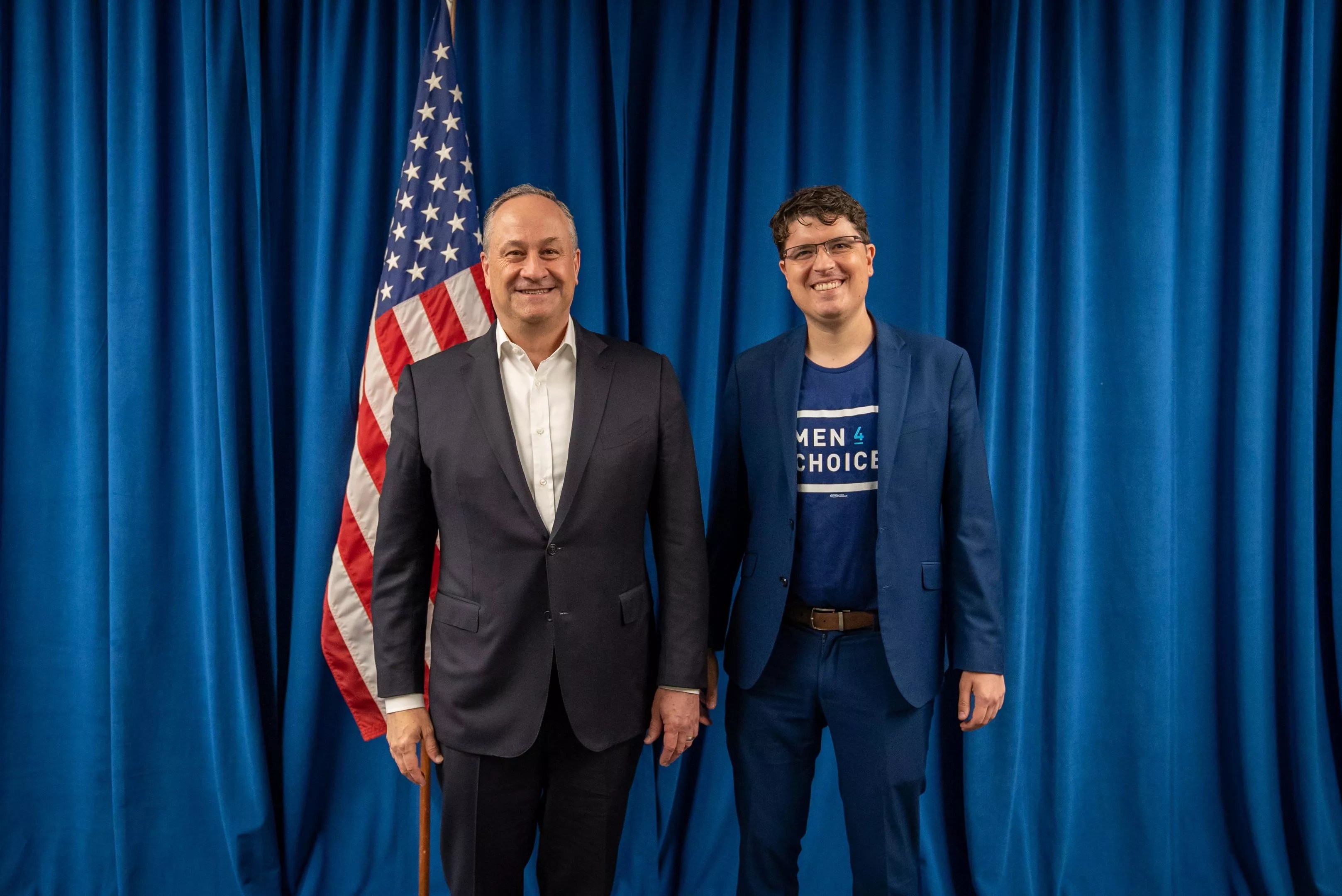 Second gentleman Doug Emhoff (left) and Men4Choice deputy executive director Aaron Bos-Lun