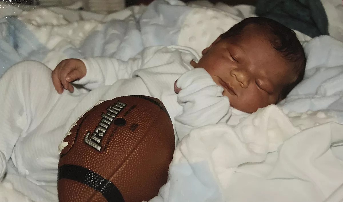 She and Jeffrey learned their baby’s sex early in the pregnancy and acted accordingly. They painted his room red and blue. They dressed him in boy-themed onesies. They placed a football next to him in baby pictures because his big brother was on the high-school team. “We were all like, ‘Oh, this is going to be so funny when he’s playing football,'” Nikki remembers.