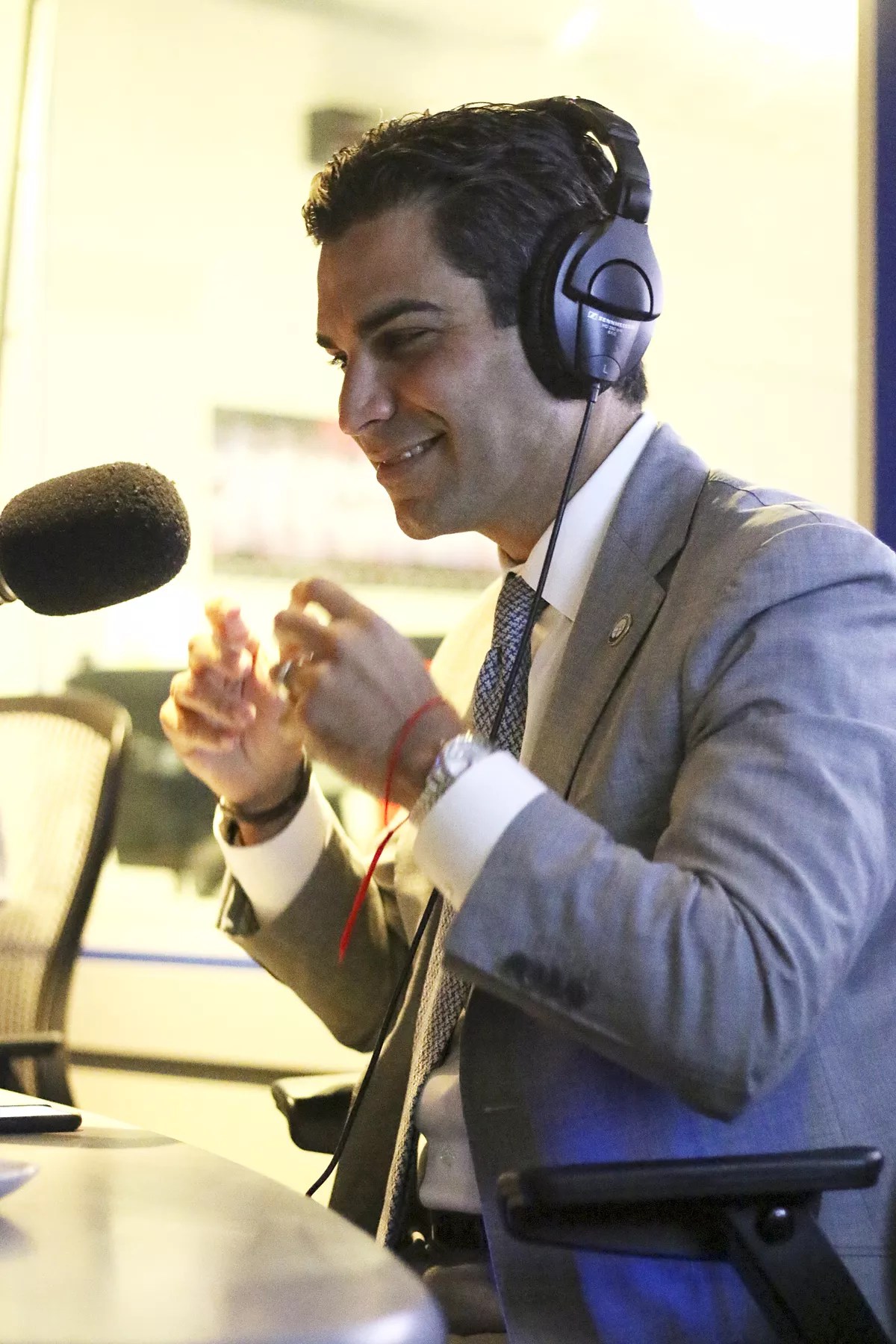 Then, in 2009, the seat representing the Hispanic-heavy, mainly residential District 4, which includes the neighborhoods of Silver Bluff, Shenandoah, and Flagami, opened on the city commission. Francis, then 32, decided to run. Though his mother fretted about having to live through the drama that plagued the family after his father’s removal from office, he was brought up to see public service as something noble. Wanting to be elected on his own merits instead of his dad’s name, he says, he left his middle name out of campaign material Francis Suarez has pushed the strong-mayor initiative in radio interviews. Photo by Michael Campina