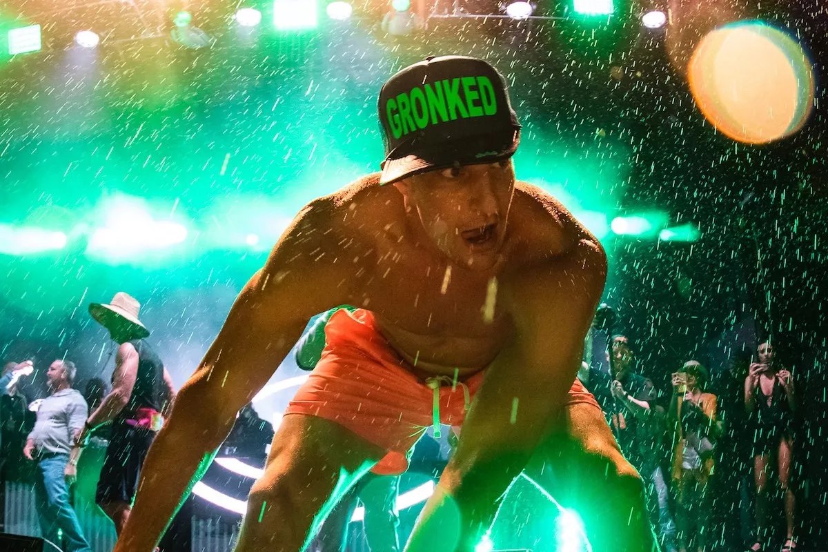 The event line was curling around the Bandshell. Gronkites were shrouded in the uneasy anticipation of the party. One man feebly tried to get a “Gronk! Gronk! Gronk!” chant going, but to no avail. The attendees were a surprising mix of old and young (all 21 or over), with a small percentage dressed how we all imagine festival-goers: clad in neon apparel, fishnets, and not much else.