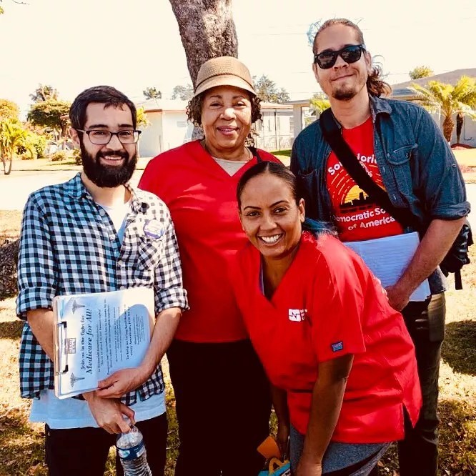 Millicent Bowerbank (center) and members of Miami Democratic Socialists of America.