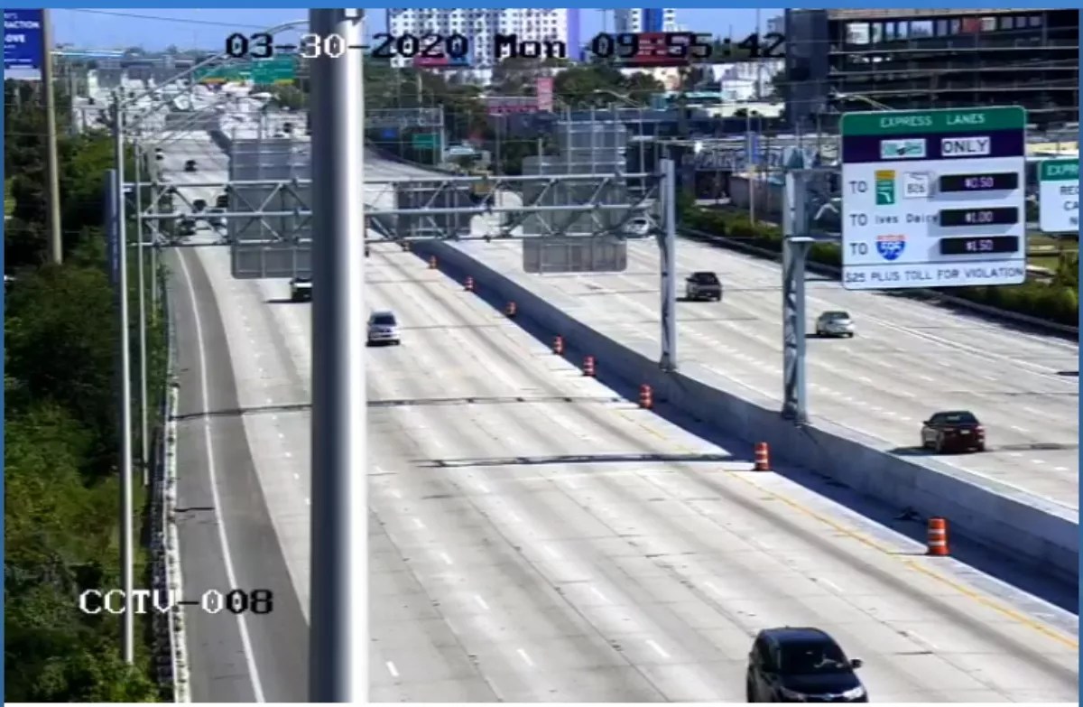 Since Miami-Dade County Mayor Carlos Gimenez issued a stay-at-home order last week, snarled traffic is a thing of the past. Here’s a photo of all the cars on Interstate 95 near Wynwood this morning via a WeatherBug webcam: