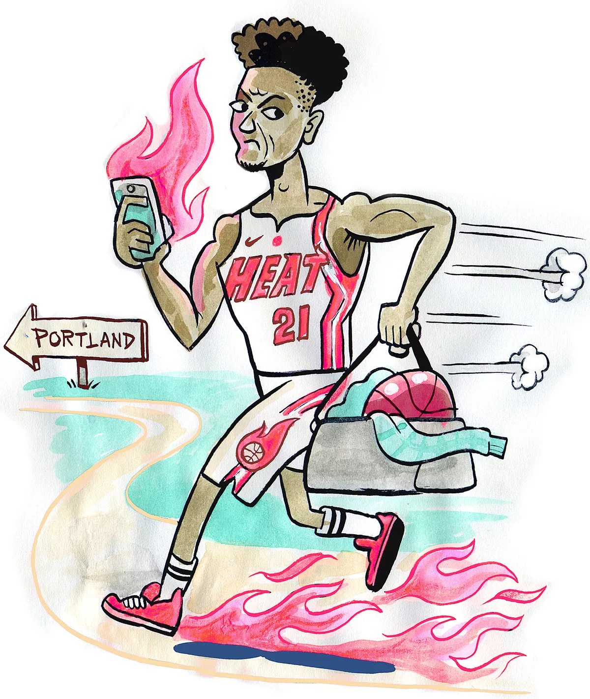 Plot twist: Whiteside thought wrong. Today the Miami Heat is the team with the shooters, most notably Duncan Robinson, Kendrick Nunn, Tyler Herro, and – hilariously – Meyers Leonard, the player Portland traded for Whiteside. Unfortunately for Hassan Whiteside, the Heat far and away bests his new team by just about every shooting measure. Illustration by Dan Zettwoch