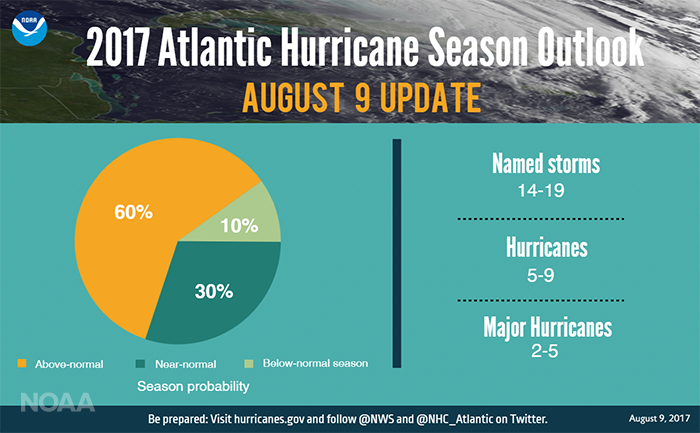 “Today’s updated outlook underscores the need for everyone to know their true vulnerabilities to storms and storm surge,” FEMA Administrator Brock Long announced. “As we enter the height of hurricane season, it’s important for everyone to know who issues evacuation orders in their community, heed the warnings, update their insurance and have a preparedness plan.”