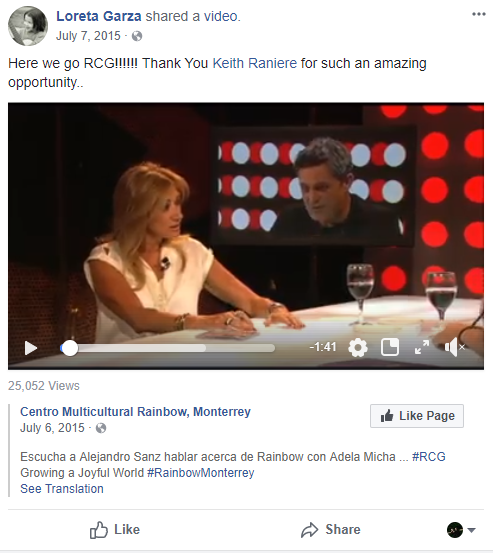 In response, sisters Loreta and Jimena Garza posted fawning praise of Sanz’s interview on their Facebook pages. “Here we go RCG!!!!!!” Loreta Garza wrote July 7, 2015. “Thank You Keith Raniere for such an amazing opportunity.”