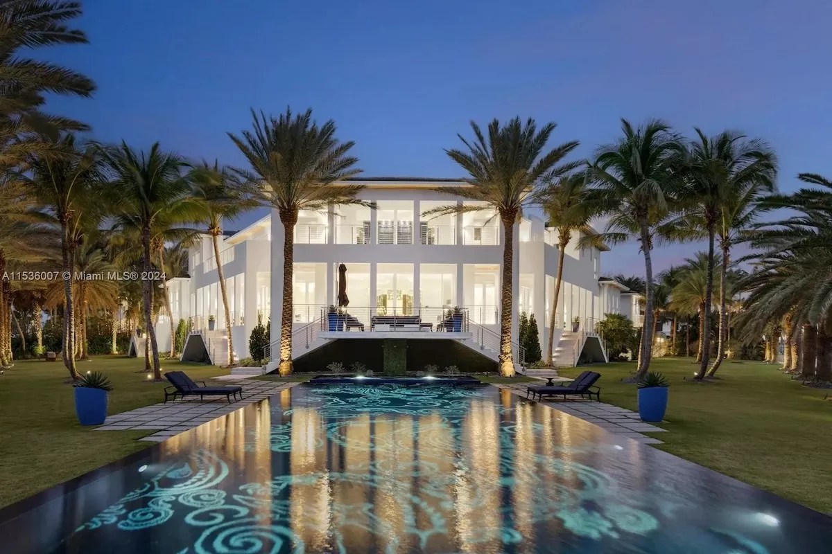 Listed in February for a whopping $57 million, the sprawling waterfront mansion sits on a V-shaped lot tucked away in the exclusive Gables Estates community and is designed by Miami architect Ramon Pacheco. The 1.2 acre, palm-tree lined property boasts eight bedrooms, 12 bathrooms, and features a spa, five-car garage, and a one-of-a-kind mosaic infinity pool overlooking Biscayne Bay.