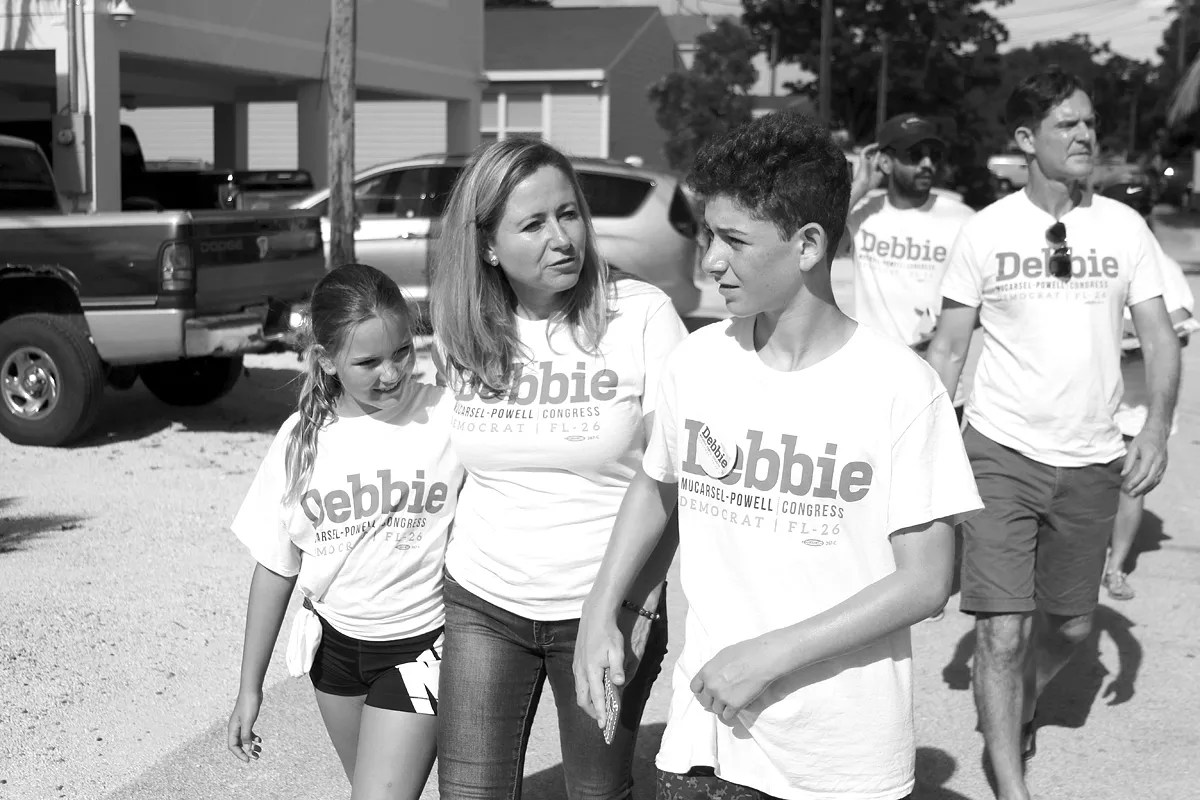 “If I can do this, if I can flip this seat, I think it shows that the blue wave is legitimate,” she says, “and that this sort of grassroots effort can result in a real win – and that people are hungry for it.” Debbie Mucarsel-Powell often brings her family along for canvassing. Photo by Michael Campina