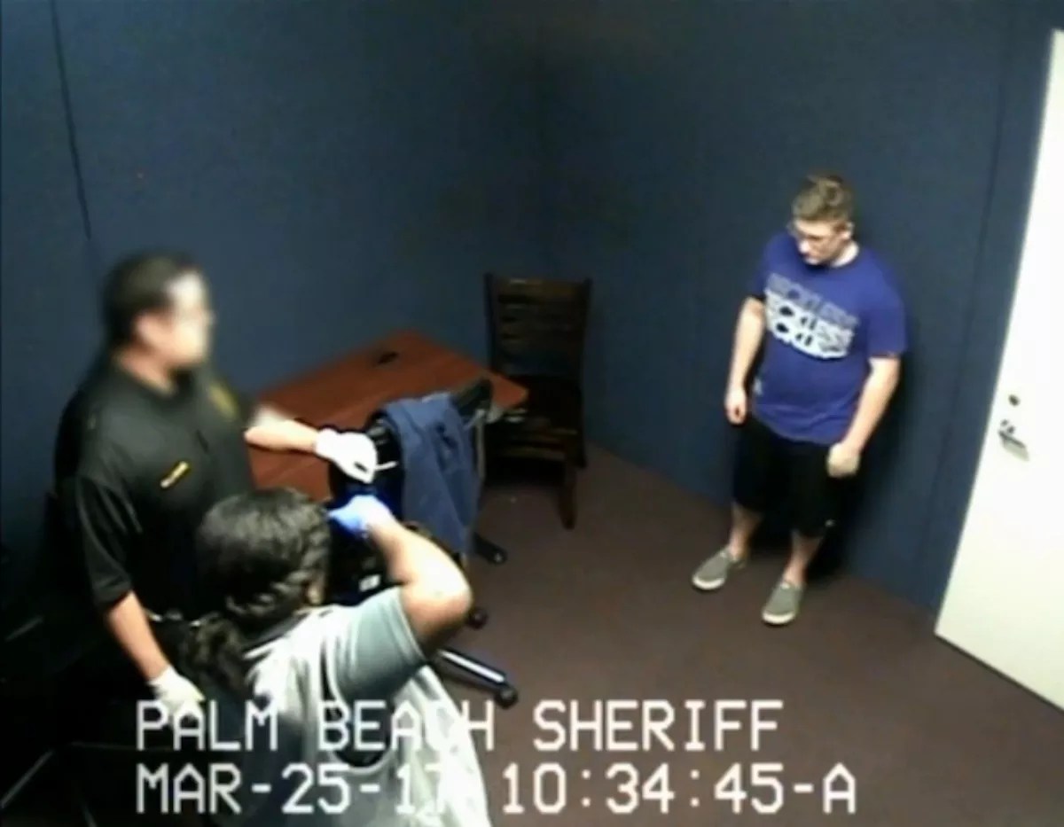 Neighbors would later recount to Palm Beach County sheriff’s deputies the sounds of a woman’s screams coming from the house. None of them called 911. Investigators photograph Randy Herman Jr. shortly before his arrest. Screenshot via Palm Beach County Sheriff’s Office
