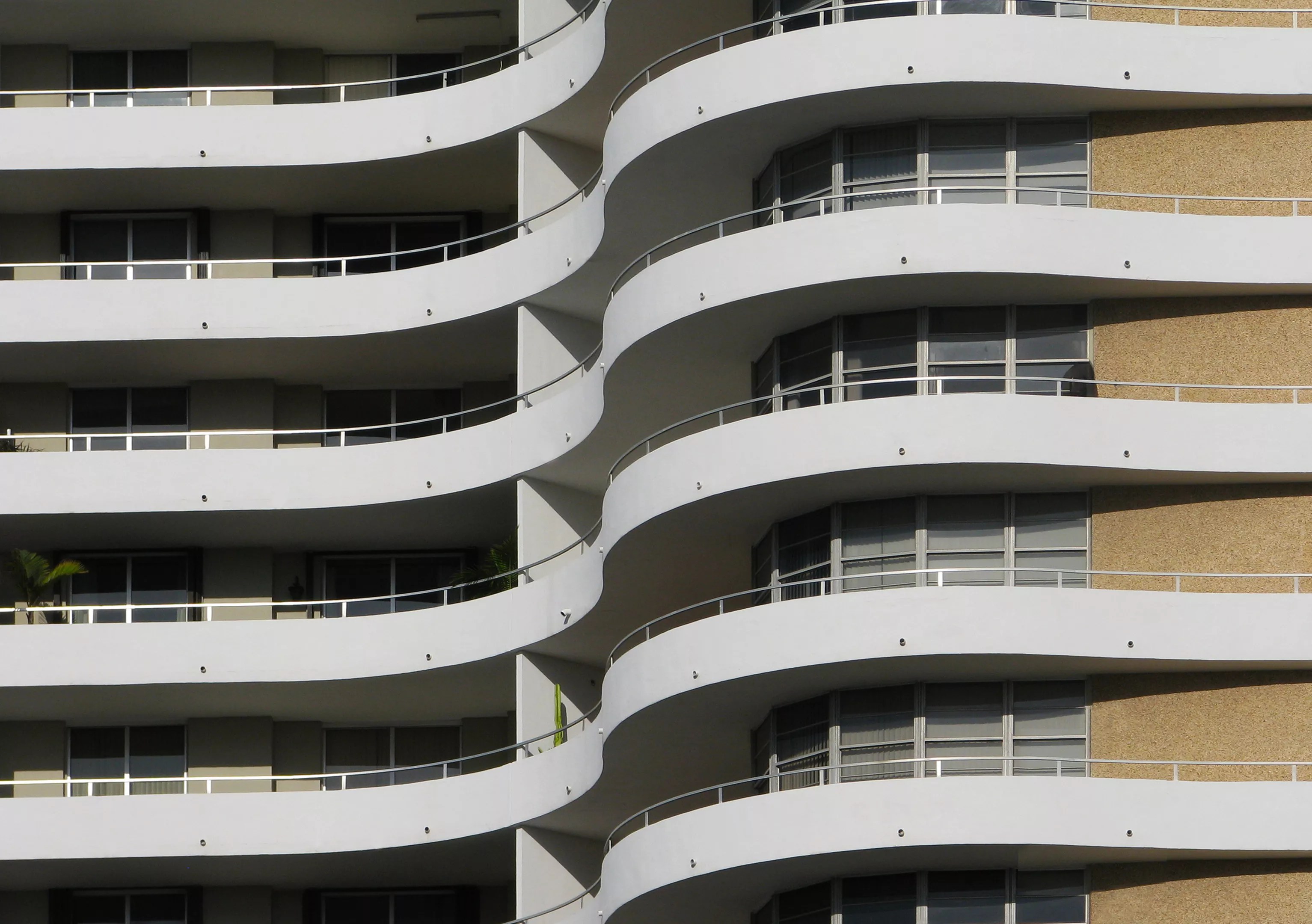 Meandering balconies at Oceanside Plaza condominium, a Lapidus property in Miami Beach.