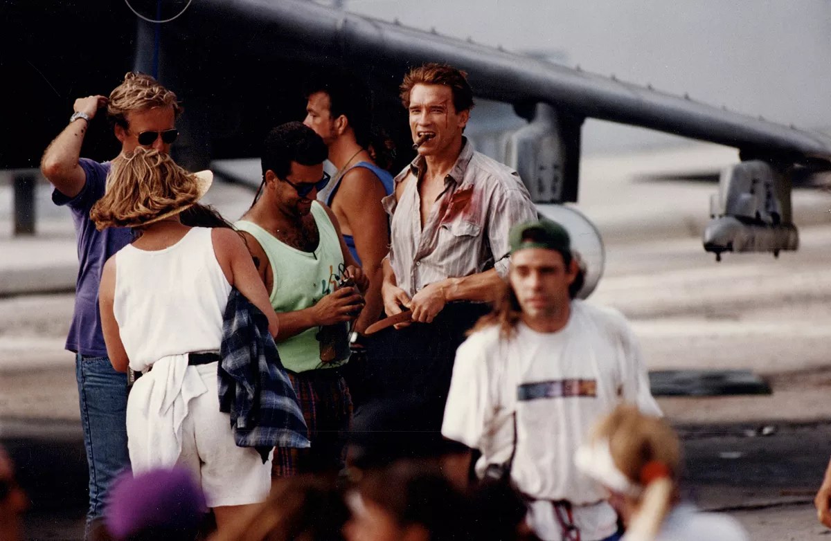 “One of my other freelancers had a brand-new Lincoln, and Bill said, ‘They’ll let you drive that thing right under the courthouse,'” Sandlin says. “Sure enough, this photographer drove this shiny Lincoln into the courthouse and got him the picture while everyone else was parked out front.” Arnold Schwarzenegger smokes a stogie on the set of True Lies. See more photos from Bill Cooke’s archives. Photo via the Bill Cooke archives
