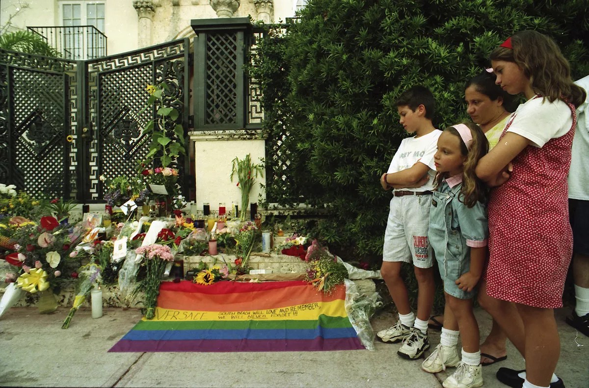 Cooke could be difficult, especially if he sensed any ego or pretentiousness. Over the years, he’d abruptly cut off friendships over perceived slights, only to quickly restart them with a phone call and no mention of the previous offense. And he always followed his gut – no matter the collateral damage. Mourners visit the Versace memorial. See more photos from Bill Cooke’s archives. Photo via the Bill Cooke archives